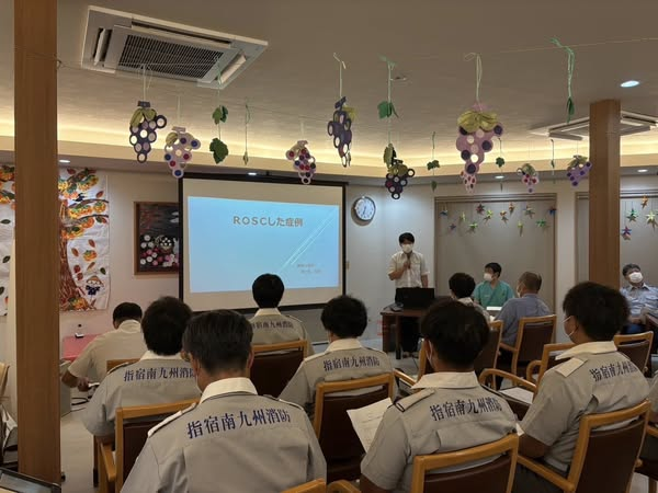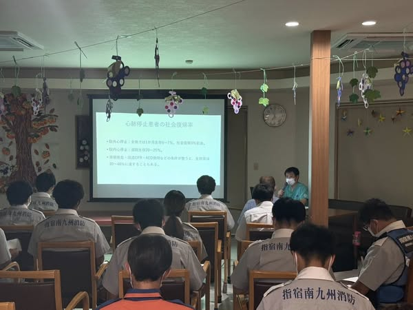 南九州消防署頴娃分遣所からは「ROSC症例」についての症例発表があり、松岡理事長より「心拍再開後の集中管理(post-ROSC care)」に関する講義を行いました。