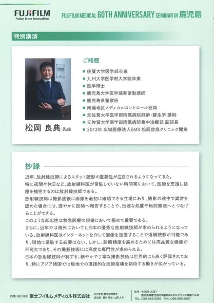 富士フイルム主催 FUJIFILM MEDICAL 60周年記念セミナー にて、松岡理事長が講演いたします