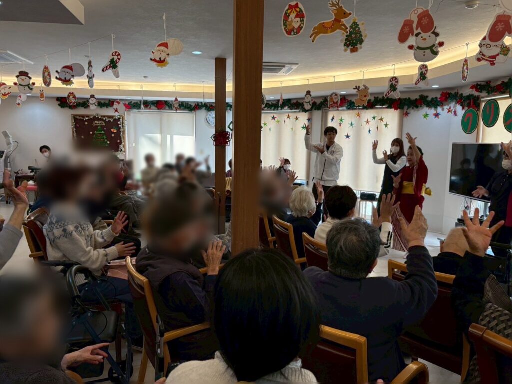 会では、日本舞踊の披露や大抽選会を行い、また、枕崎市の菓子工房いづみや様のクリスマスケーキを皆さまに召し上がっていただきました。終始、笑顔あふれる和やかなひとときとなりました。